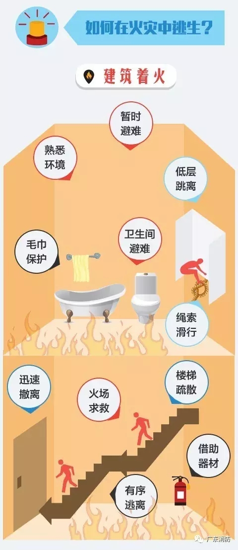 一張圖教你火災(zāi)時如何逃生↓↓↓