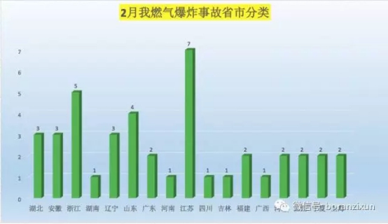 2017年2月燃?xì)獗ㄊ鹿是?位省份為江蘇?。?起)、浙江?。?起)、山東?。?起)。