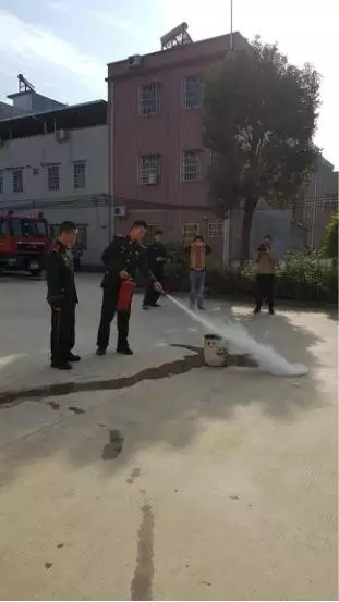 消防隊(duì)員在示范滅火器使用。。。